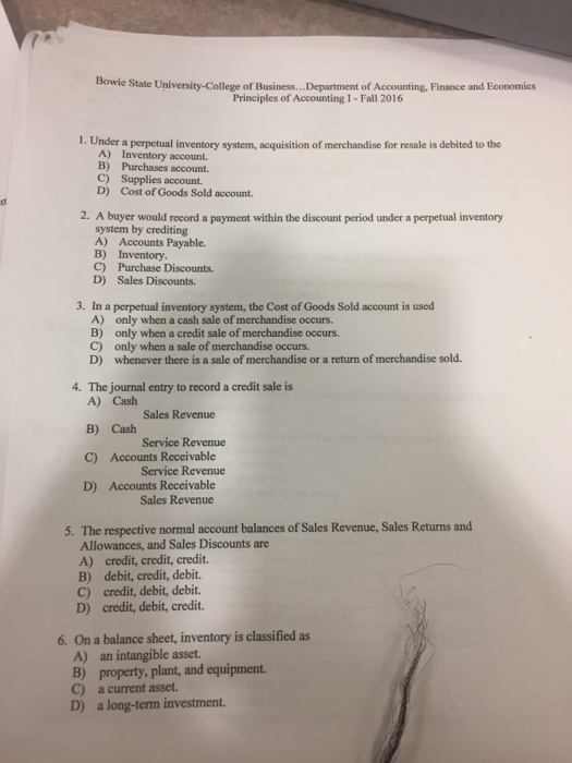 Under a perpetual inventory system acquisition of merchandise for resale is debited to the _____. Test Bank for Accounting Principles Eleventh Edition 5 13 Accounting for Merchandising Operations CHAPTER 5 ACCOUNTING FOR MERCHANDISING OPERATIONS Summary of Questions by LEARNING Objectives and Blooms Taxonomy Item LO BT Item LO BT Item LO BT Item LO BT Item LO BT True-False Statements 1. Paden Company purchased merchandise from Emmett Company with freight terms of.